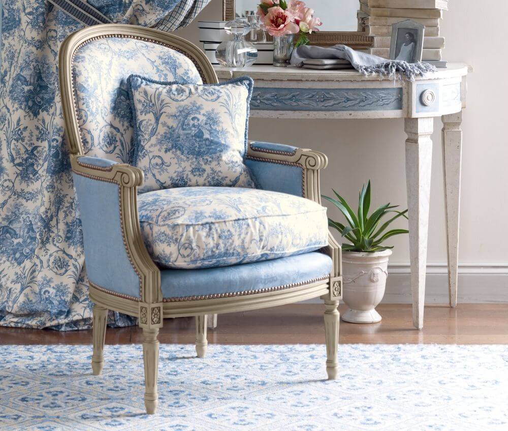Кресла в стиле прованс бывают мягкими, плетёными, подвесными. Ещё один вариант – качалки. Все модели объединяет деревенская простота и при этом изящество форм.