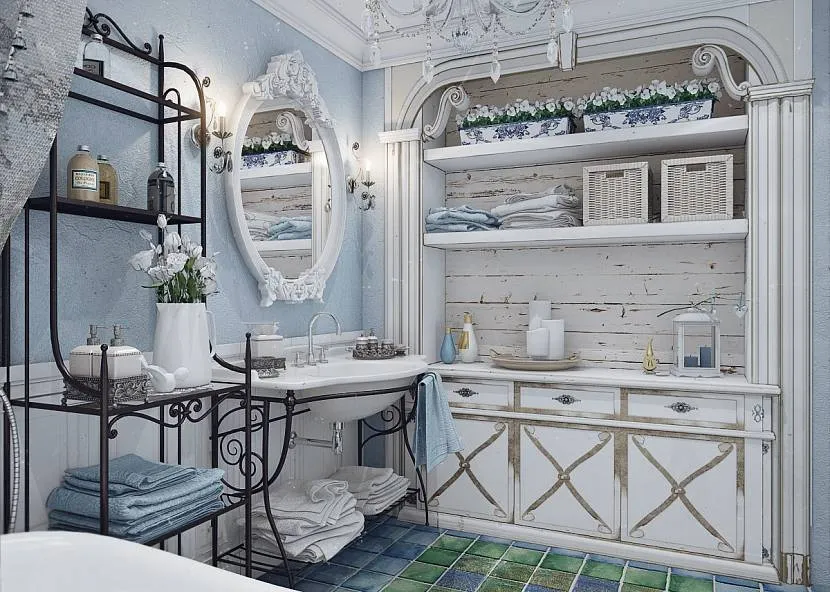 Характеристики осветительных приборов, подходящих в санузел, оформленный под шебби-шик: