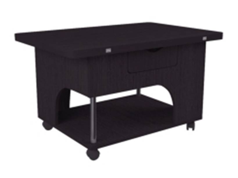 Эта конструкция относится к категории универсальных трансформеров, и позволяет несколькими движения превратить миниатюрный журнальный столик в полноценный обеденный стол на всю семью. Превосходный выбор для тех людей, которые обладают малогабаритными квартирами. Отдельного внимания заслуживает столешница, которая фиксируется в трех положениях. В сложенном виде не занимает много места и может использоваться для хранения декоративных элементов, а также чаепитий. Вес – 60,65 кг. Для изготовления столешниц применяется ЛДСП. Также следует отметить наличие полочки под журналы или другие мелочи.