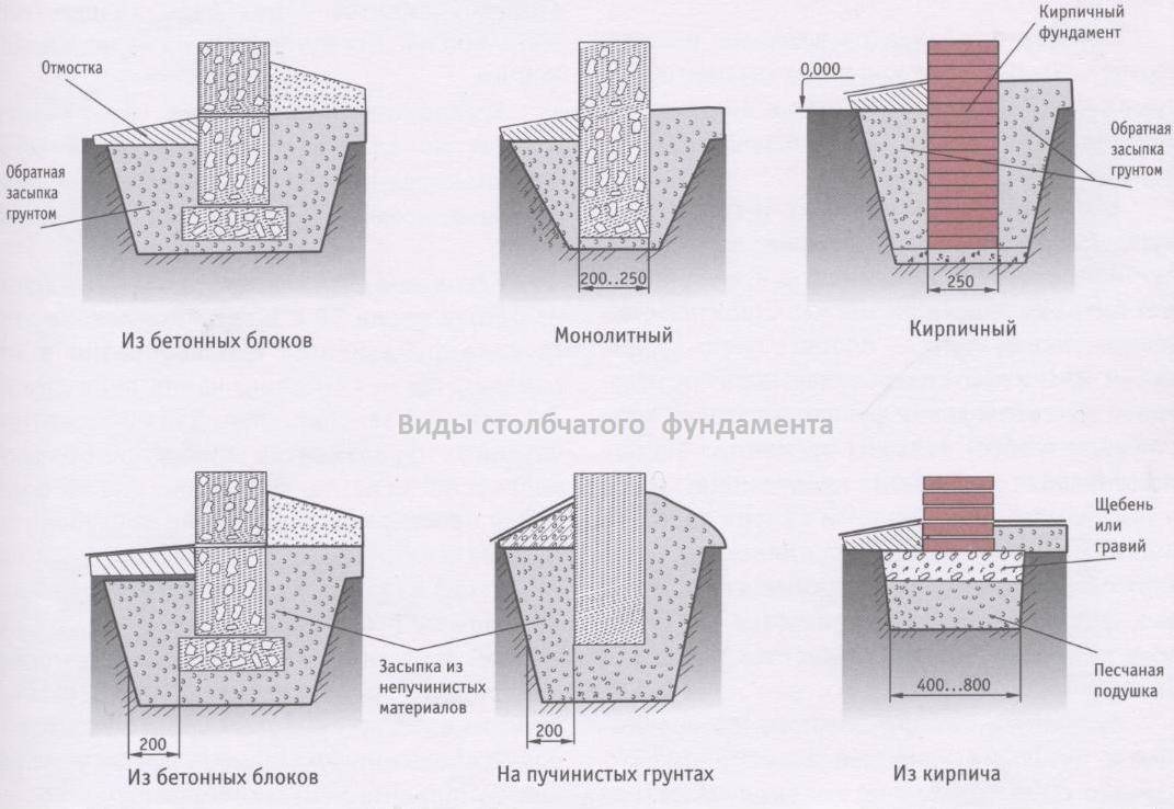 Теперь рассмотрим, как правильно сделать столбчатый фундамент под каждый конкретный вид.