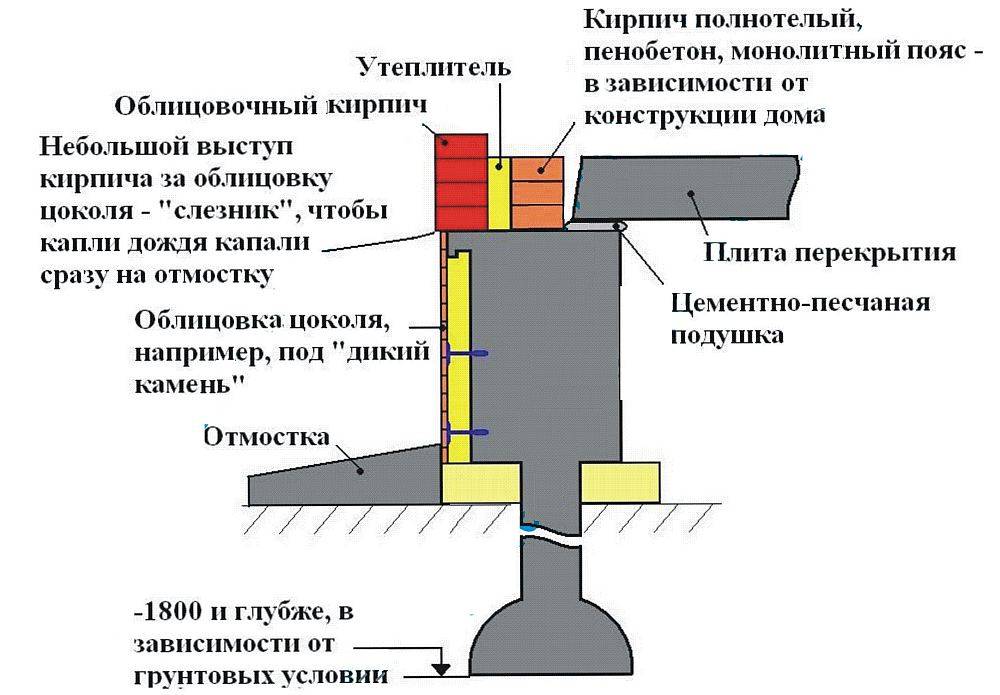 - Сборная конструкция. Строители собирают фундамент из составных компонентов (блоки, кирпич, камни).