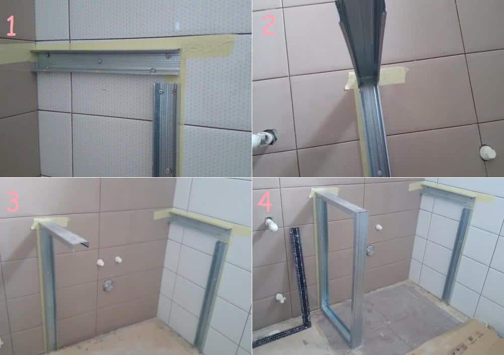 | Подготавливаем уголки и влагостойкий гипсокартон, нарезанный по требуемым размерам. | |