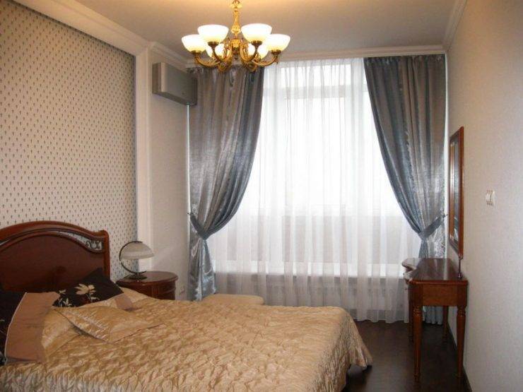 Вместо тюля обрати внимание на шелк или органзу, а поверх – бархат, велюр, объемные гобеленовые ткани. Но учти, что это уместно только в большой и просторной спальне. Пышные шторы с ламбрекенами, кистями и подхватами хорошо сочетаются с таким же балдахином над кроватью