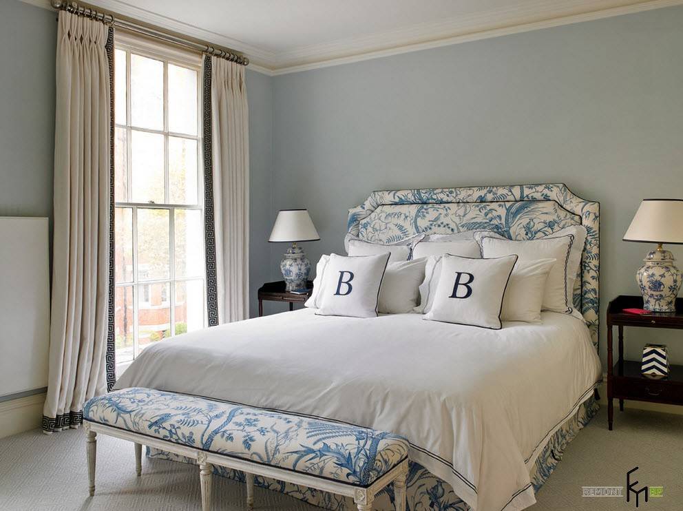 Дизайн окна в спальне классического стиля предусматривает подбор материала по плотности. Тяжелые и достаточно плотные занавески отлично дополнят интерьер в английском стиле. Если гардины имеют узоры, подбирайте их в тон стенам.