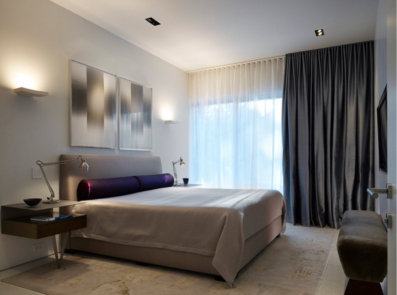 Главным фактором выбора штор для спальни, является учет общей стилистики помещения. К примеру, если спальня выполнена в классическом стиле, применение ярко-красных штор будет не слишком уместным. Цвет штор в бежевой спальне должен гармонировать с остальными элементами помещения.