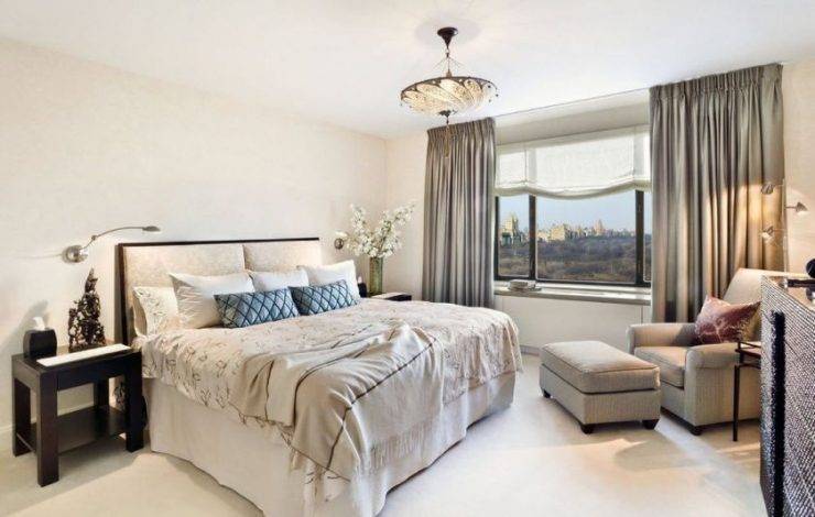 Существует несколько правил того, какого цвета выбрать шторы в спальне: