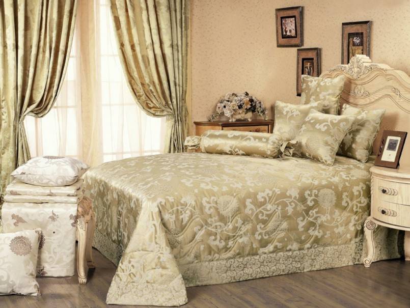 Помните и о том, что довольно сложно обеспечить гармоничное сочетание шелка или атласа с прочими деталями дизайна интерьера спальной комнаты.