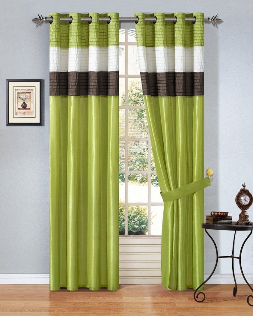 Спектр зелёного цвета в гостиной вписывается в разную стилистику. Психологи отмечают, что зелёные тона успокаивают, умиротворяют. Цвет ранней зелени освежает интерьер. Шторы пастельных тонов зелёного цвета хорошо впишутся в гостиную со столовой.