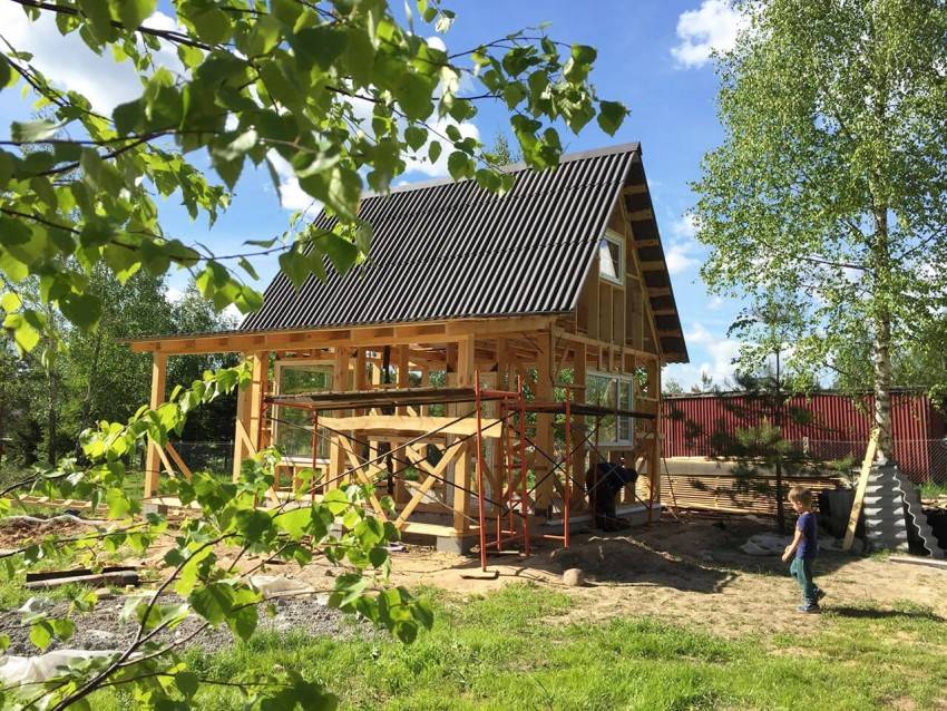Перед началом работ по сборке каркаса следует разровнять площадку и при необходимости ее осушить, чтобы готовая конструкция не шаталась во время работы. На ровной площадке проще установить вертикальные стойки каркаса, под которые не придется подкладывать кирпичи и обрезки досок.