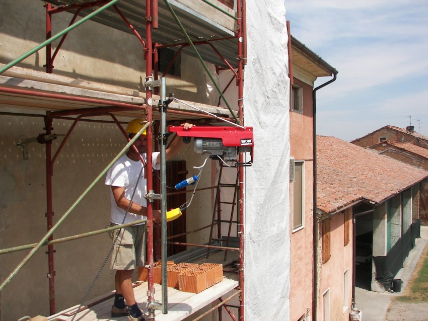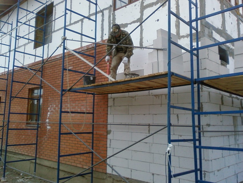 Рост человека меньше высоты дома, поэтому выполнить кладку стен или отделку фасада без лесов или подмостей невозможно. Эти конструкции позволяют безопасно вести работы на высоте и дают возможность всегда иметь под рукой запас расходных материалов.