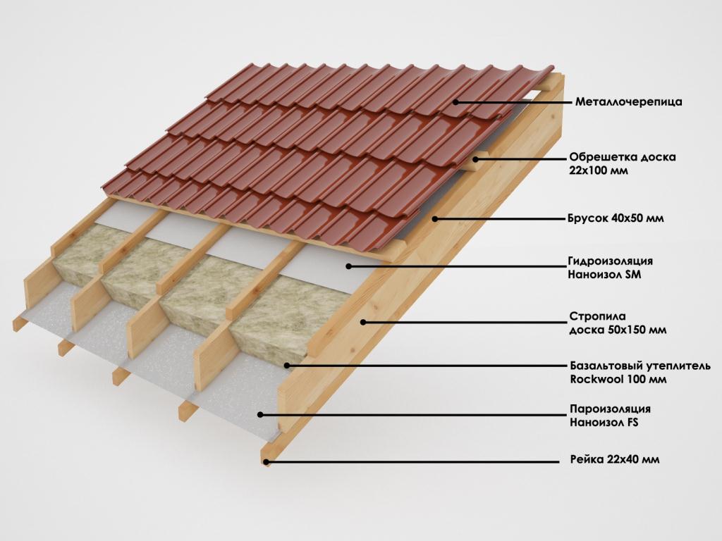Поэтапно монтаж лаг, стропил и кровельного пирога выглядит так: