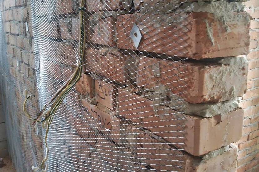 Железная сетка улучшит сцепление цементного раствора со стеной