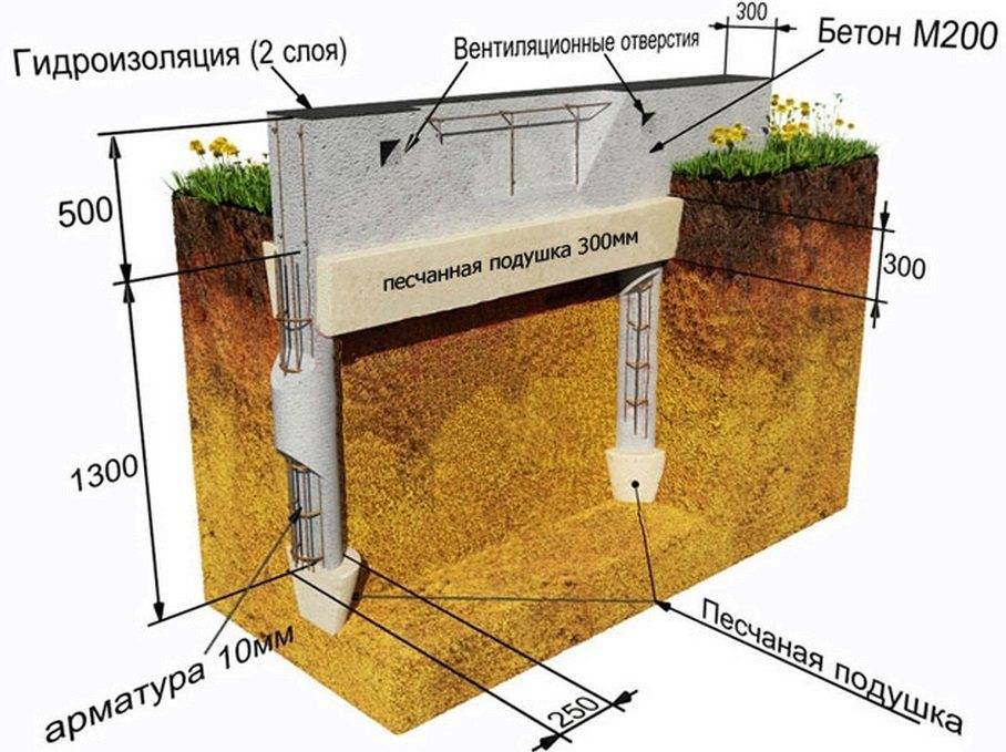 Особенное внимание стоит уделить столбчато-ленточному фундаменту своими руками на пучинистом грунте. В этом случае велика вероятность повреждения конструкции при морозном пучении