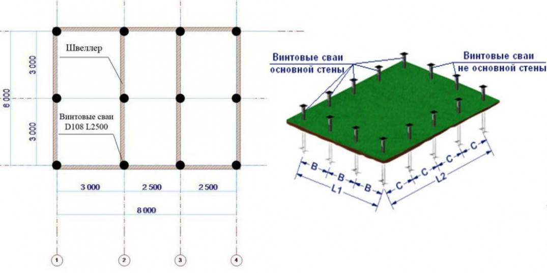 Свайно-винтовой фундамент устанавливается в четыре этапа: