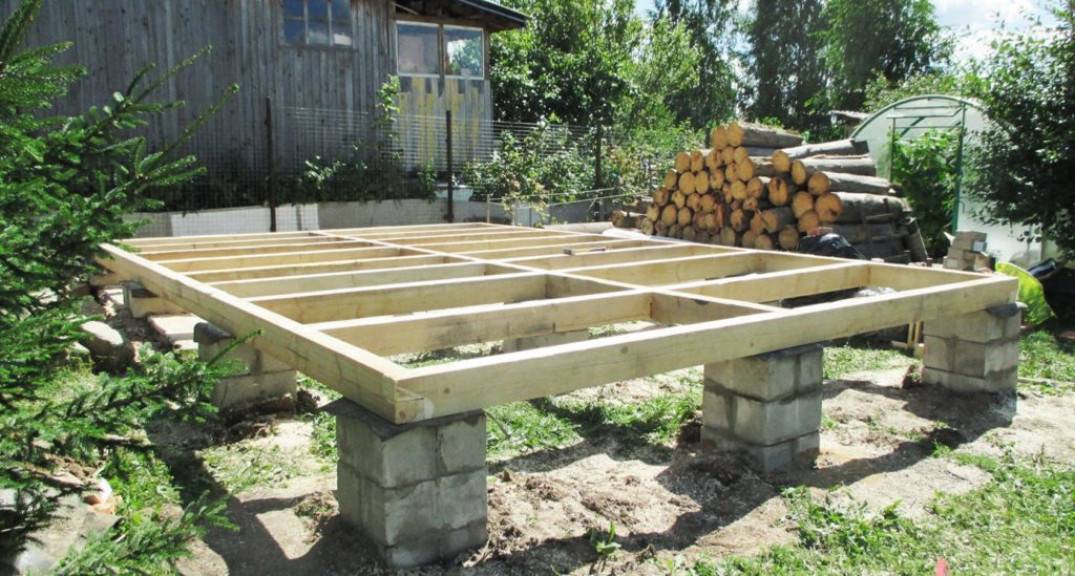 Эта конструкция состоит из опорных столбов, расположенных в 2-3м между собой. Существуют сборные и монолитные варианты.