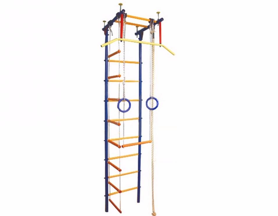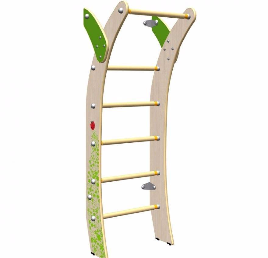Самым востребованным вариантом является Г – образная стенка, которая состоит из высокой лестницы, заканчивающейся наверху турником для подтягивания или односторонним рукоходом. Модели могут выпускаться с различным видом крепления.