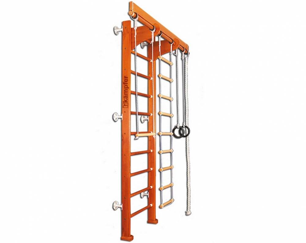 - комплектация: лестница, турник, кольца, трапеция, канат и веревочная лестница.