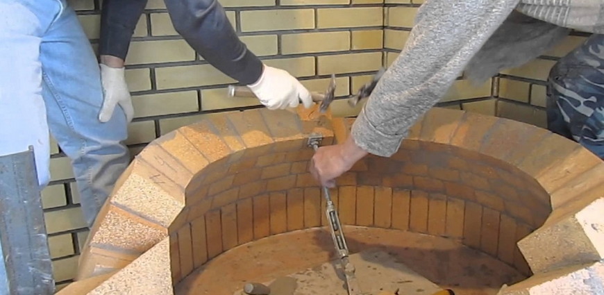 В остальном алгоритм работ почти такой же: рассчитывают порядовку, вычисляют размер подрезки углов, подготавливают основание, нарезают кирпичи, выкладывают печь. И в этом случае для облегчения кладки лучше подготовить лекало.