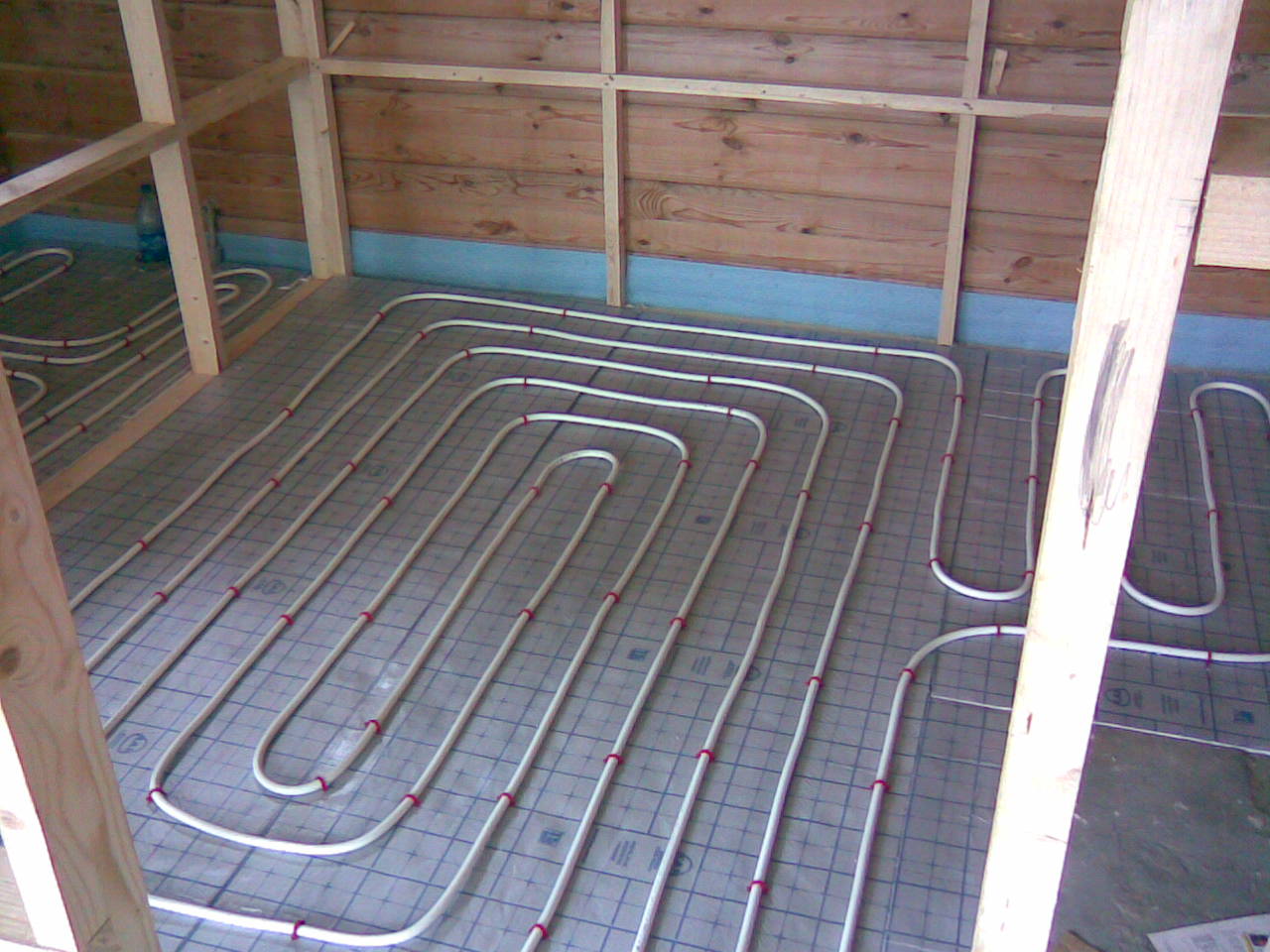 - В том случае, если отопительная система монтируется в легких каркасных строениях – труб можно прокладывать в пазах плит слоя теплоизоляции.