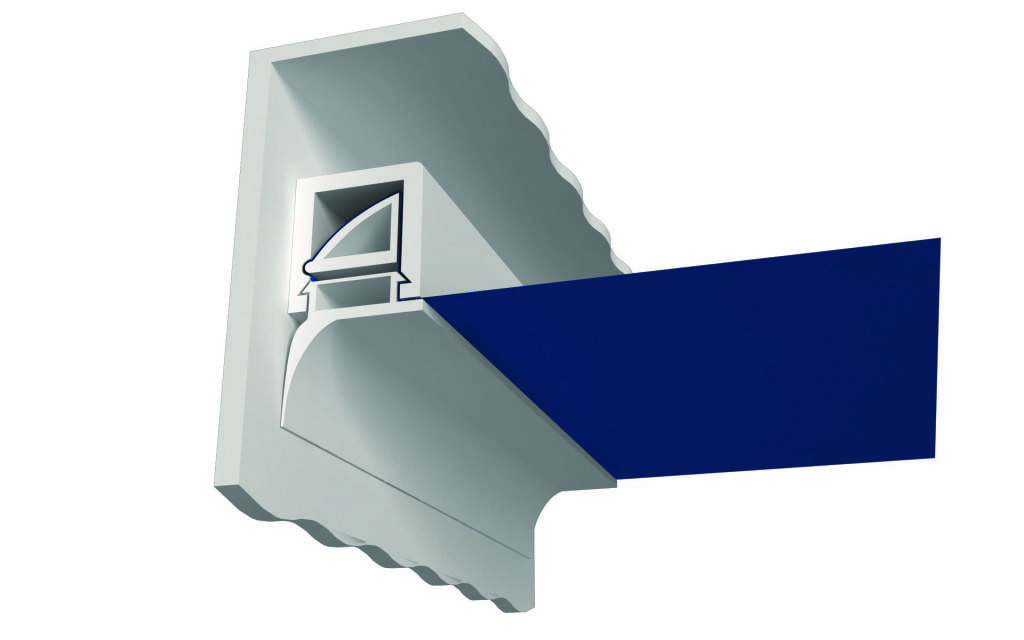 Клипсовое крепление изготавливается из прочного пластика и устроено таким образом, что не требует дополнительных декоров. Этот метод является основным и самым распространенным в креплении тканевых потолков, также легким и быстрым.