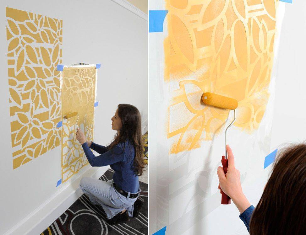 Краски для нанесения узоров на стену и техника покраски стены с помощью трафарета