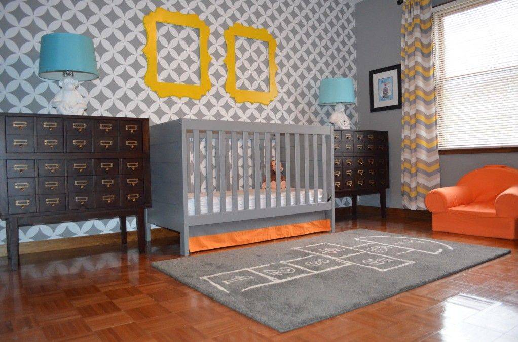 Шаблонные изображения хорошо выглядят на большой, свободной от мебели стене. Удачным решением будет использовать трафарет в зоне выключателя. Это место пачкается больше всего, рисунок поможет скрыть следы. Оригинально выглядит переход изображения со стены на мебель или пол.