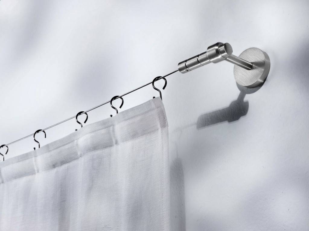 - Струнные. Шторы держатся на крючках или зажимах, прикрепленных к тонкому металлическому шнуру.