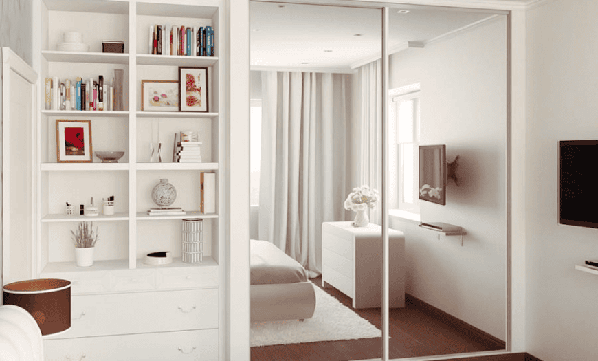 - встроенная гардеробная должна иметь дополнительное освещение и множество зеркал: помещение благодаря этим несложным приемам станет визуально просторней и светлей;