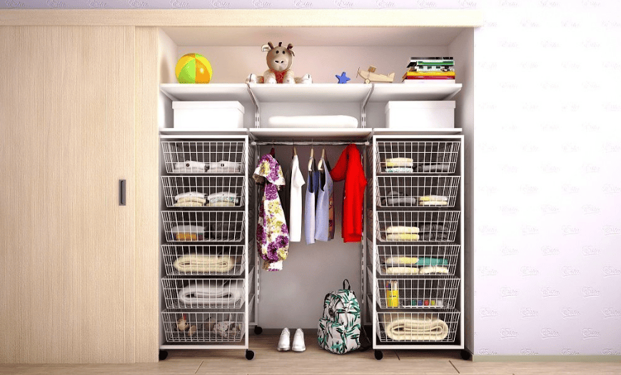 Сетчатые корзины не защищают вещи от пыли, поэтому в них лучше хранить часто используемые вещи