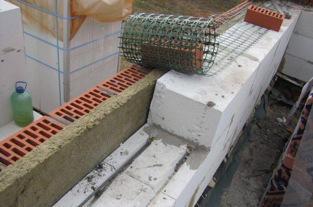 В идеале его ширина должна быть равной ширине стены. Это можно сделать в том случае, когда фасад будет полностью облицовываться плитным утеплителем. Если же для декорирования решено использовать только штукатурный раствор, то ширину армопояса придется уменьшить на 4-5 сантиметров, чтобы оставить место для пенопласта или минваты. В противном случае в зоне укладки пояса жесткости появится сквозной мостик холода очень солидных размеров.