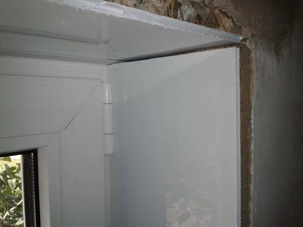 - Вырежьте по размерам верхнюю часть откоса. Для крепления используйте саморезы (потай) или маленькие гвозди.