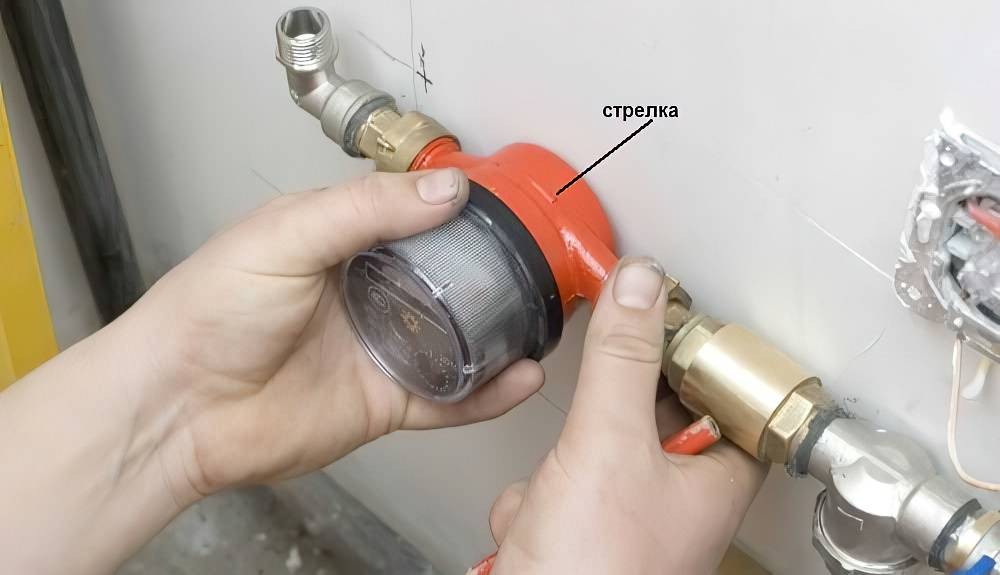 При этом важно располагать фильтр так, чтобы его часть с улавливающей сеткой смотрела вниз. Кроме этого такой способ монтажа позволит впоследствии проще очистить и промыть фильтрующую сетку