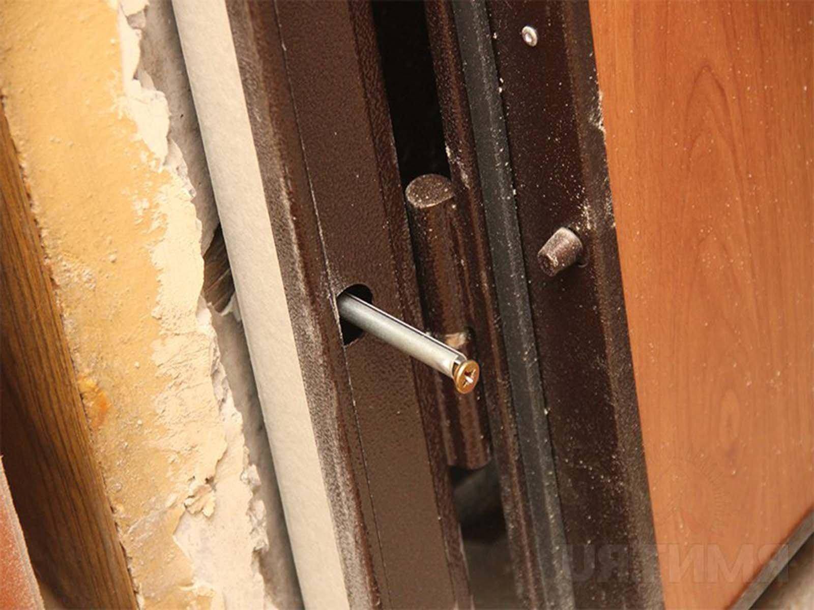 Окончательная фиксация дверного полотна проводится при помощи саморезов длиной до 15-ти сантиметров или дюбелей.
