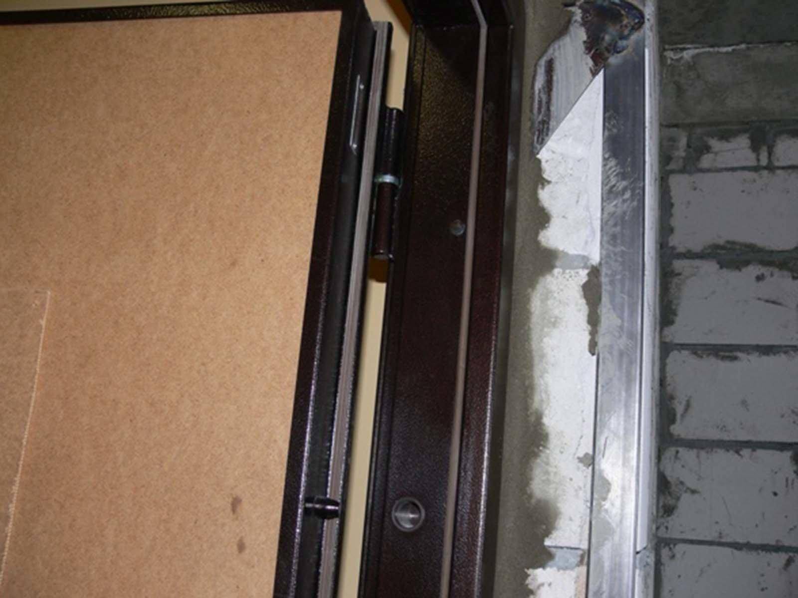 На каждой стойке их должно быть не менее трех. Эти пластины позволяют установить дверь в одной плоскости с наружной стеной, так как они обращены внутрь квартиры и крепятся к проему на достаточном расстоянии от ее поверхности.