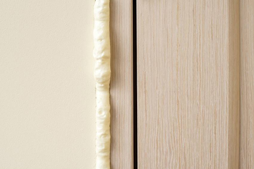 После монтажа дверной коробки, могут появиться зазоры. Дефекты устраняют с помощью монтажной пены. Это улучшит звукоизоляцию, а также станет дополнительной теплоизоляцией.