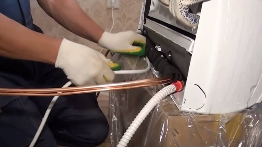 Медные трубки подключаются к внутреннему блоку кондиционера