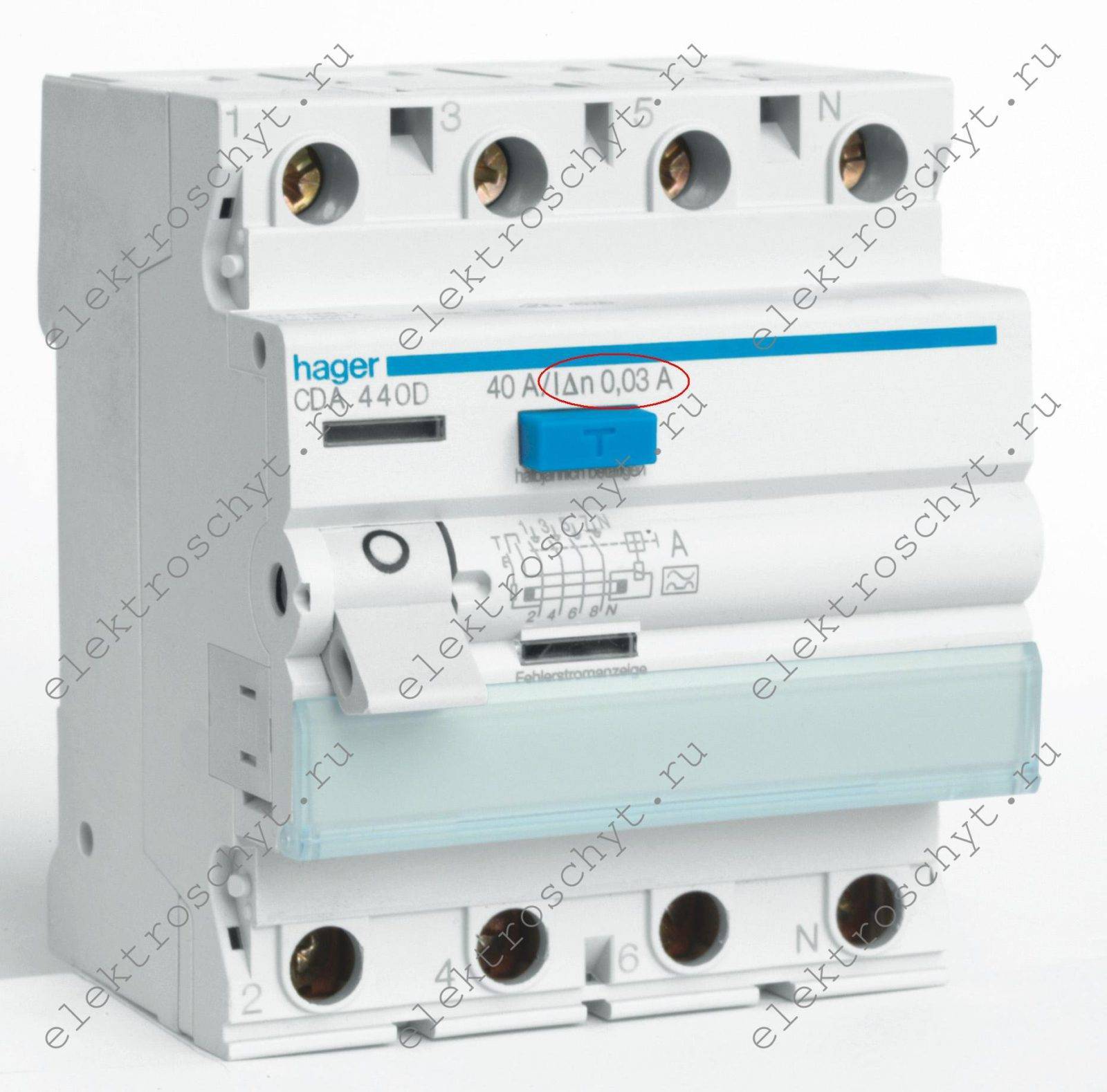 Номинальный отключающий ток УЗО I∆n или ток утечки также указывается на лицевой панели УЗО.