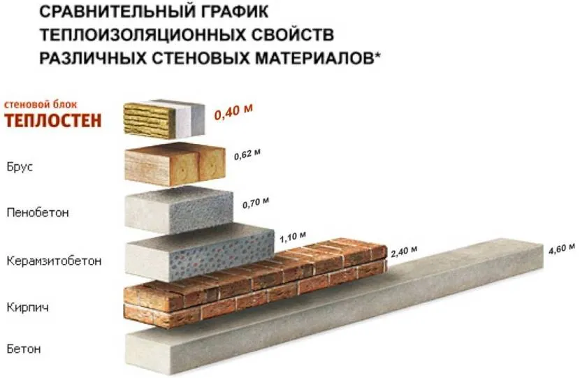 Сравнение теплоизоляционных свойств распространенных стройматовИсточник мособлжилсервис.рф