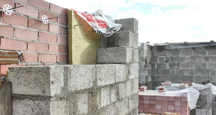 Это значит, что ничего кроме двух рядов керамзитобетонных блоков нет. Фасадные материалы снаружи полностью отсутствуют. При такой ситуации, облицовывая здание с помощью кирпича, есть возможность поместить между облицовкой и керамзитобетонном утеплитель.