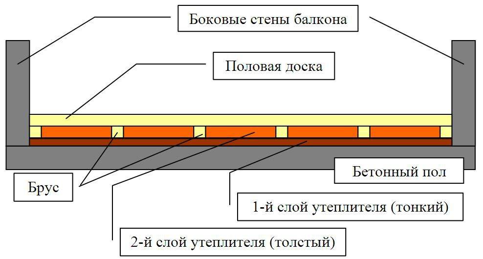 Утепление стен балкона и его потолка мало эффективно без качественной термоизоляции пола. При этом создание прочного и долговечного напольного покрытия требует устройства либо стяжки – но она сильно утяжеляет конструкцию – либо системы на лагах.