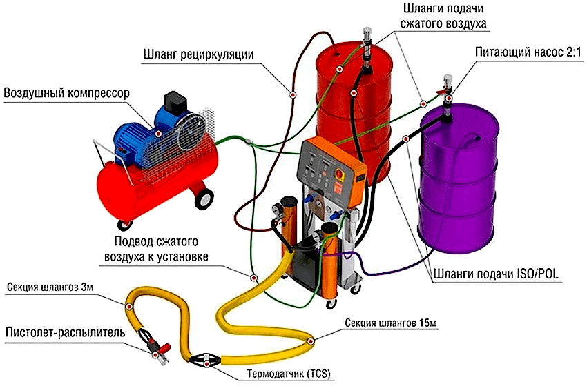 Смешивание составляющих может быть осуществлено качественно только при условии наличия специальных установок высокого давления