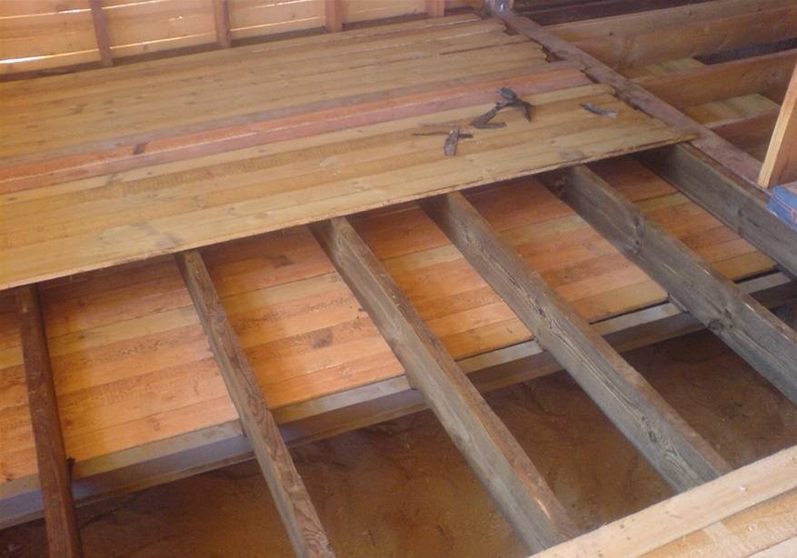 - после этого проводится монтаж толстой фанеры или листов ДСП. Их закрепляют с помощью саморезов. Так готовится основание для прокладки теплоизоляционного слоя;