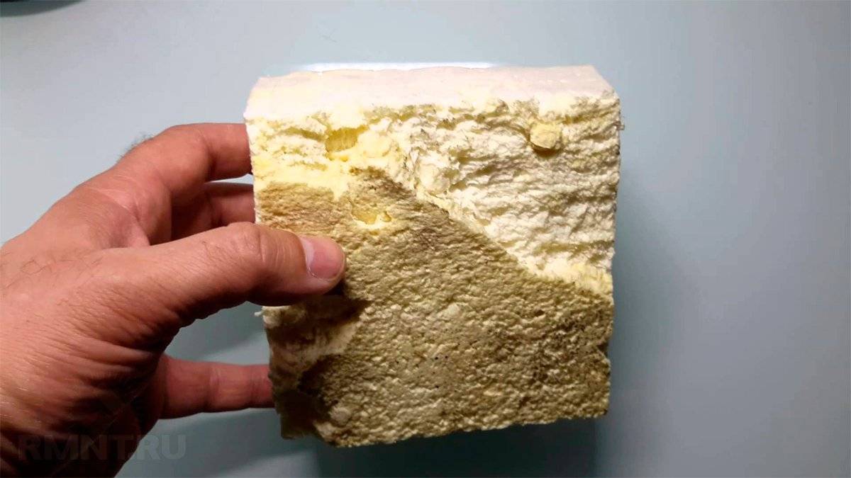 Чаще всего пенополистирол (ППС) используют для наружного утепления сооружений. Но не стоит забывать, что пенопласт практически не обладает звукоизоляционными свойствами, а при горении выделяет ядовитый газ. К тому же он часто страдает от зубов грызунов.
