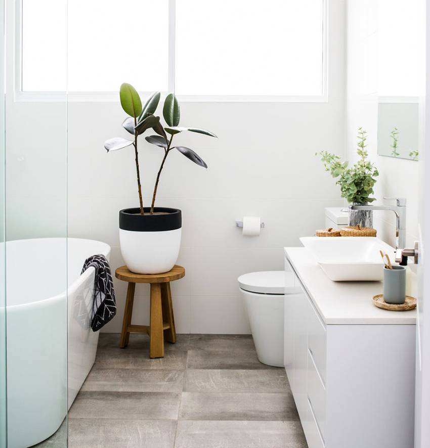 Зеленые растения в горшках – лучший декор для скандинавской ванной