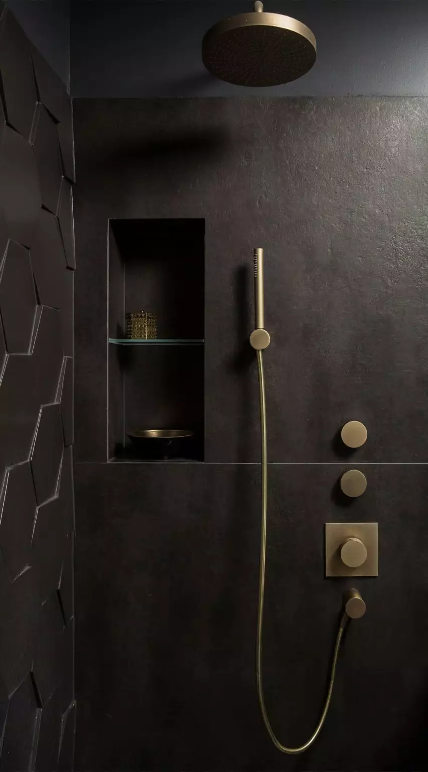 Черная ванная всегда в тренде. Это настолько элегантно и шикарно, что вы никогда не устанете от него. Этот цвет остается трезвым и играет на простоте. Это создает атмосферу, которая не лишена характера и индивидуальности. Самый простой способ – это чередование различных материалов, отделки и эффектов. У вас всегда есть возможность добавить несколько сдержанных штрихов более уютного и теплого оттенка или сделать ставку, например, на контраст с белым.