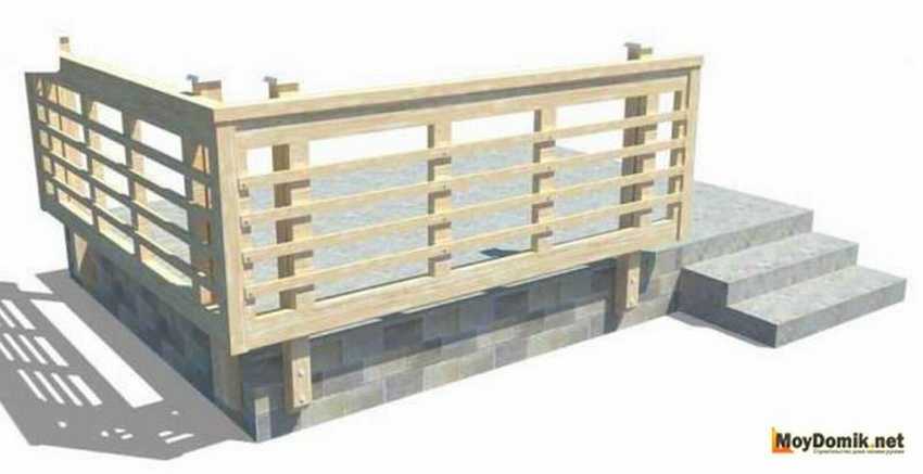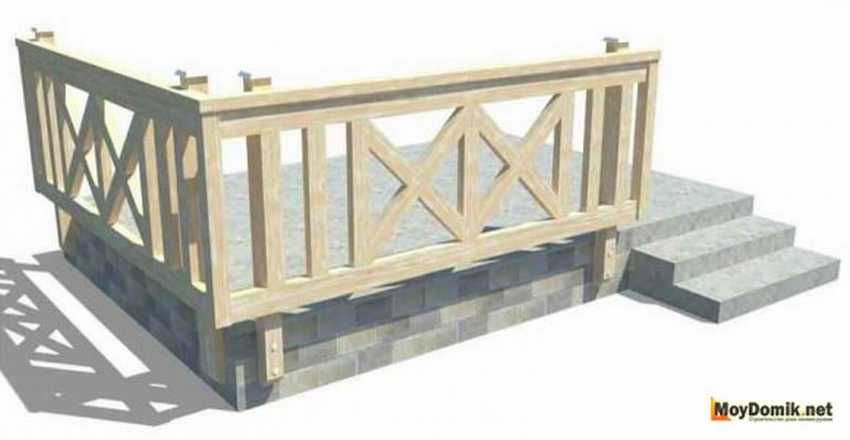 Перила и ограждения выполняют одновременно защитную и декоративную функции, к тому же их можно использовать при монтаже дополнительного освещения, а также подвешивать на них цветочные горшки. Существует несколько вариаций ограждений из дерева: