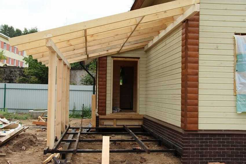 Частью каркаса является стропильная система веранды. Установка стропил и обрешетки зависит от того, каким кровельным материалом будет покрыта крыша веранды.