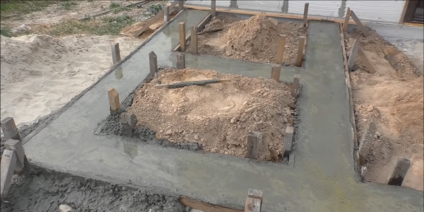 - В бетонной коробке потребуется убрать землю на глубину 25-35 см;