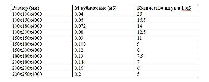 Чтобы не производить вычисления каждый раз для такого огромного количества материала, мастера составили усредненные показатели, учитывающие кубатуру, штучность и метраж бруса в каждом отдельном виде. Данные о том, сколько бруса в кубе, таблица предоставляет четко и лаконично для максимального удобства читателя.