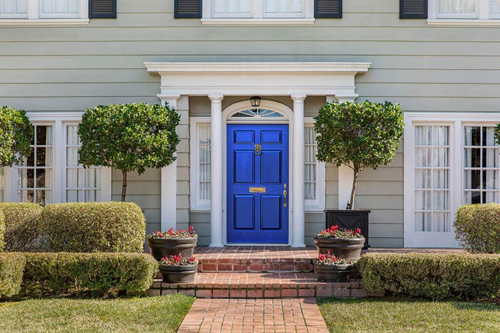 Расцветка входных дверей в частный дом и дополнительных элементов декора должны соответствовать оформлению фасада здания;